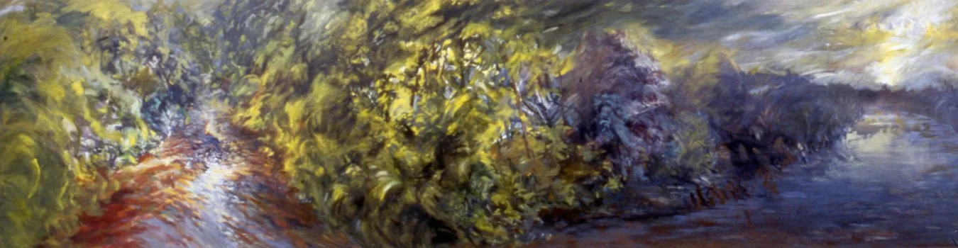 Eve’s paintings concern human interaction with the natural world, specifically investigating ways in which Americans view nature, from its extreme manifestation in the wilderness, to urban gardens and public parks. Her work is heavily influenced by the past 40 summers she has spent in a cabin in the remote Frank Church River of No Return Wilderness in central Idaho.